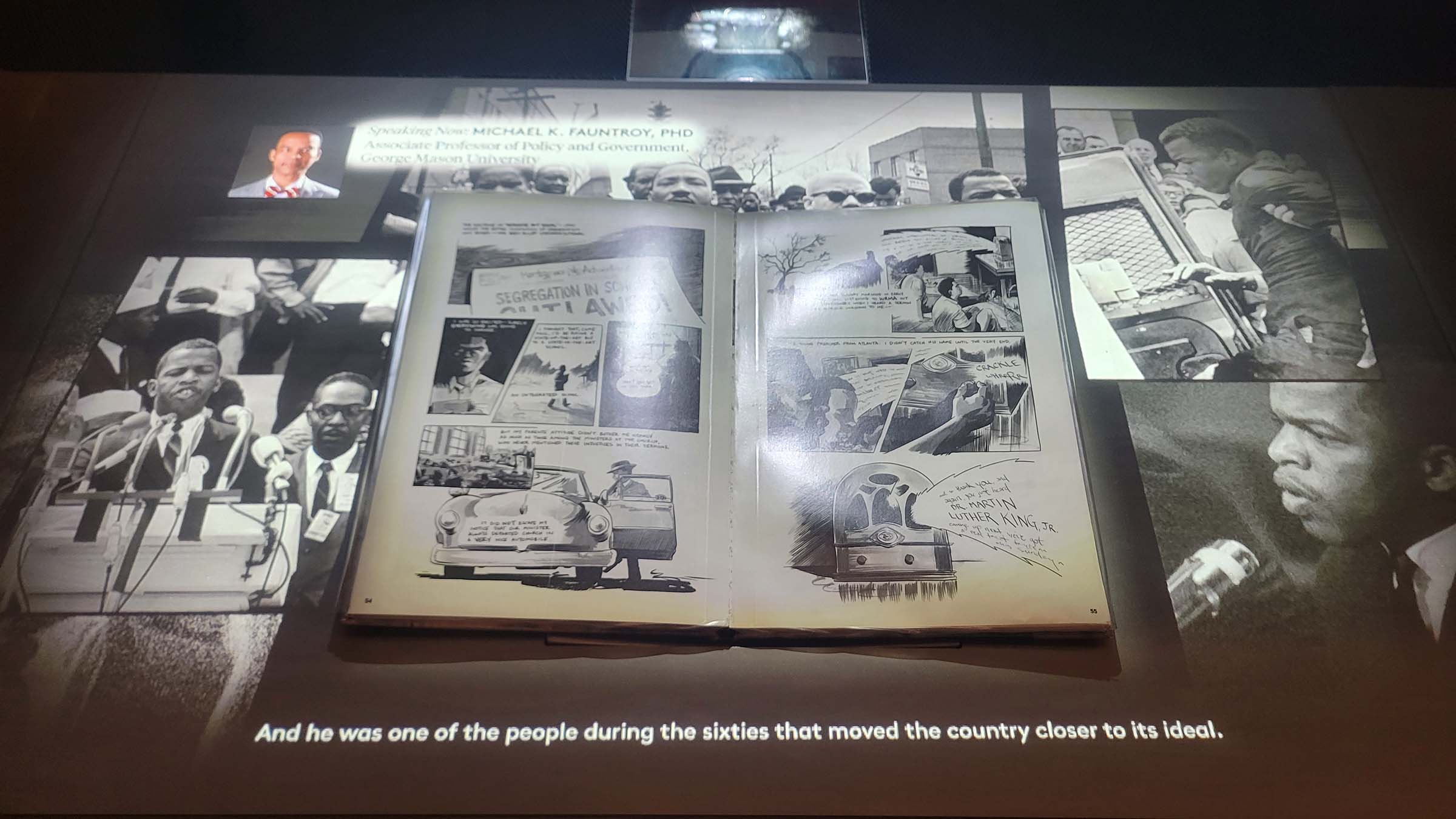 Clockwise from top right: A view of the landscape at Antelope Island in Salt Lake City, Utah. Postcards from the walking tour I took in Philadelphia during the Monument Lab Summit, a reading I gave at Politics and Prose for my new book, and me sitting in one of the history classrooms at William and Mary as we marked my 20th reunion where I also got to visit the Bray School in its new location.