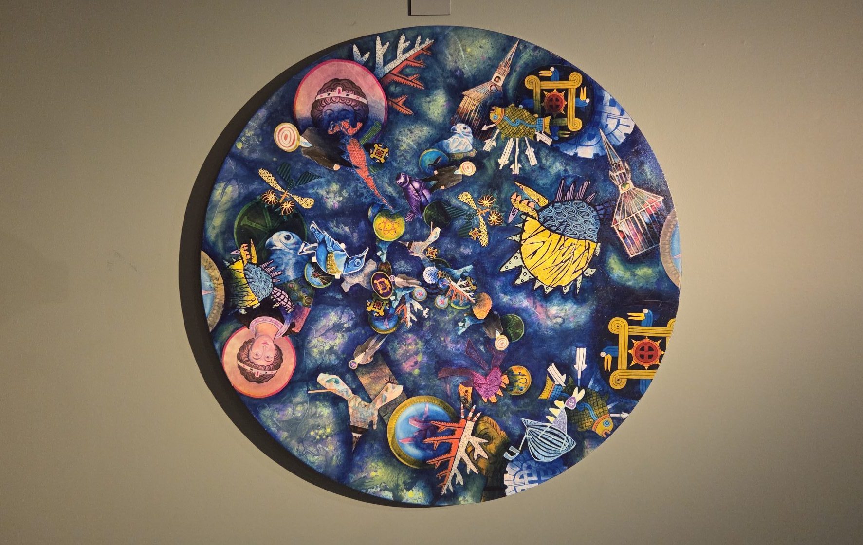 A little while after reading the piece on Gibson, I traveled to Oklahoma City for the launch of another huge professional project focused on Route 66. The event was at the National Cowboy Heritage and Western Museum, and as I meandered through the galleries I found myself arrested by a circular painting by Erin Shaw, a Chickasaw-Chocktaw self-described “artist of the borderlands, the spaces between worlds.” The painting, called Everything Belongs, is luminous. Against a background of blues and greens are a field of stories in the shape of individualized structures, animals, and symbols. It felt, almost like a yearning dreamscape, a call for imagination, a hoped for reality. One where we are all connected, and we all belong. And yet…