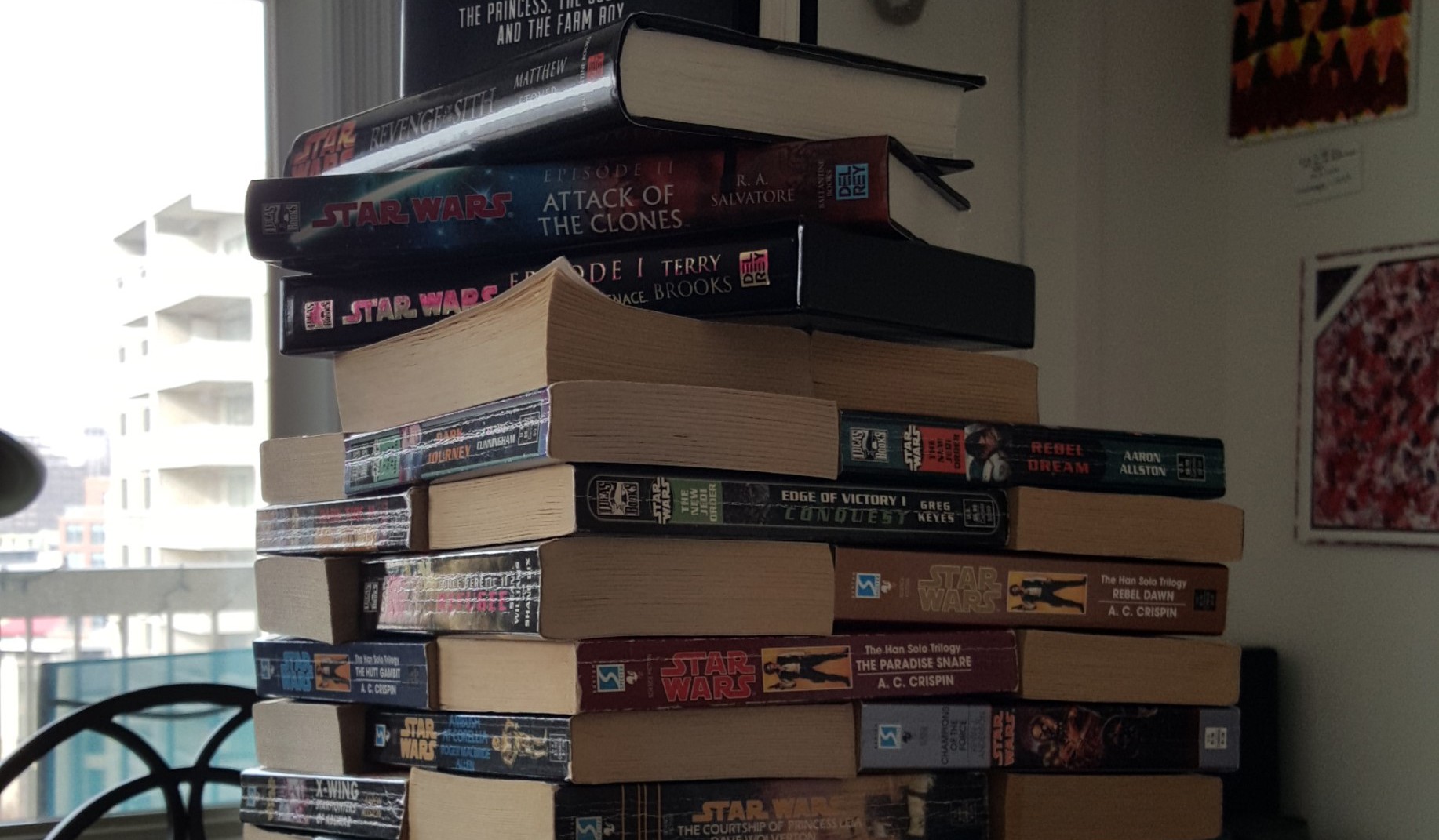 In eighth grade science class my friend Tracy slid me a folded piece of notebook paper. Scrawled across the top were the words “Star Wars Expanded Universe and Ratings” or something like that. On this paper she had painstakingly written out the name of each of the books marking each in turn with a series of stars. One for Children of the Jedi. Five for The Last Command. A blueprint for a newly inducted fan.